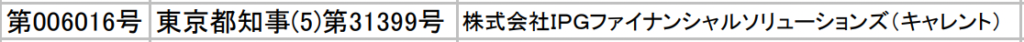 キャレントを運営する株式会社IPGファイナンシャルソリューションズは、金融庁に届け出をおこなっている正規の業者です。